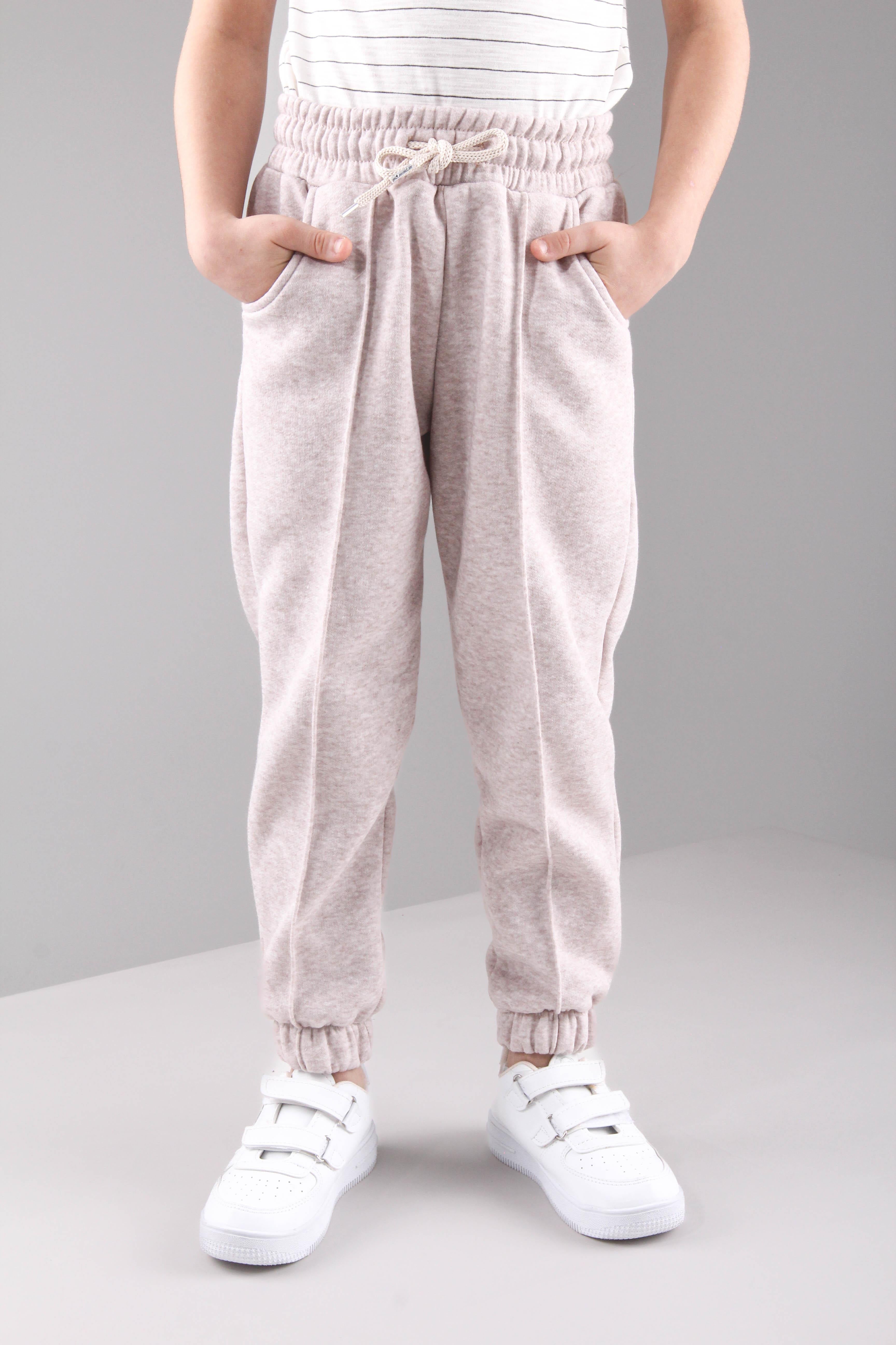 Lastikli İçi Polarlı Cepli Unisex Çocuk Eşofman Altı Bej Detay Bilgileri